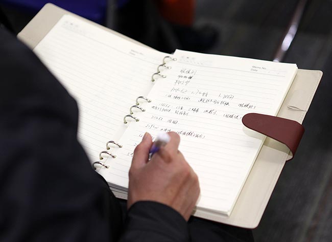 理論培訓現場,辦公桌上擺著各種輔料產品:脫模劑、清潔劑、封孔劑、美光八號蠟等。