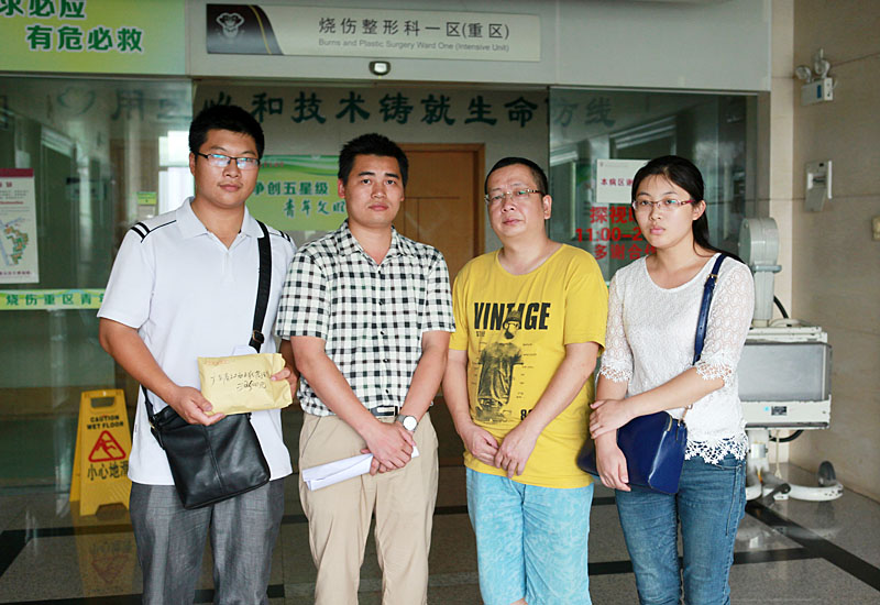 同時(shí),廣東省江西上猶商會(huì)在得知此事后,會(huì)長(zhǎng)劉易文指示秘書(shū)處組織、發(fā)起愛(ài)心捐款活動(dòng)。上猶商會(huì)各理事會(huì)員積極響應(yīng)捐款,短短幾天時(shí)間已籌集善款三萬(wàn)多元。2014年6月10日下午,商會(huì)常務(wù)副會(huì)長(zhǎng)賴(lài)厚平及商會(huì)秘書(shū)處組織副會(huì)長(zhǎng)朱復(fù)郴、秘書(shū)孔凡順及博皓公司代表組成3人探訪團(tuán),親到廣州紅十字會(huì)醫(yī)院探望李明亮夫婦,并送上了這筆愛(ài)心捐款。副會(huì)長(zhǎng)朱復(fù)郴慰問(wèn)了患者并詳細(xì)詢(xún)問(wèn)了其家屬情況,對(duì)其籌款近況提出了相應(yīng)的建議,同時(shí)鼓勵(lì)李劍、李婷面對(duì)困難要堅(jiān)強(qiáng)。李劍,李婷及其家屬對(duì)商會(huì)代表的到訪和愛(ài)心捐助表示衷心感謝!